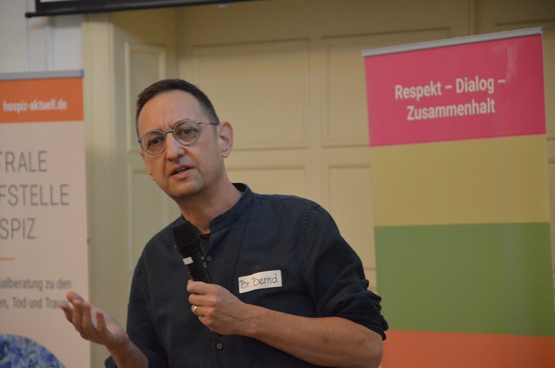 Von seinen Erfahrungen aus der islamischen Bestattung in Berlin berichtete Isikali Karayel (Markaz internationale Bestattungen und Überführungen). Er schilderte, wie er nach islamischem Ritus die erste sarglose Bestattung in Berlin durchführte - zuvor musste der sogenannte „Sargzwang“ abgeschafft werden. Dies sei nur eine der Herausforderungen, die er als islamischer Bestatter meisterte. „Sterben in Deutschland ist sehr kompliziert“, so Karayel und meint die bürokratischen Hürden, die den Bestattungstermin tage- und wochenlang verzögern können. Im Islam soll die Bestattung 48 Stunden nach dem Tod stattfinden. „Macht das Sterben unbürokratischer“, fordert auch Imam Said Arif. Außerdem gibt es nur kleine Bereiche für muslimische Gräber auf kirchlichen Friedhöfen. Karayel kämpft seit Langem für einen eigenen islamischen Friedhof in Berlin. „Es ist noch viel zu tun“, beendet der Bestatter die Gesprächsrunde.