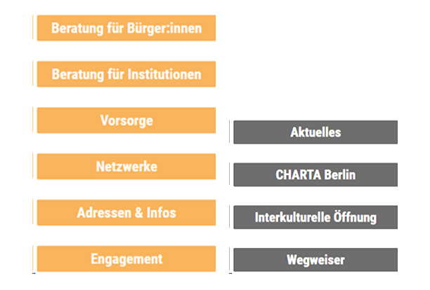 Das sind die Haupt-Bereiche der Internet-Seite: